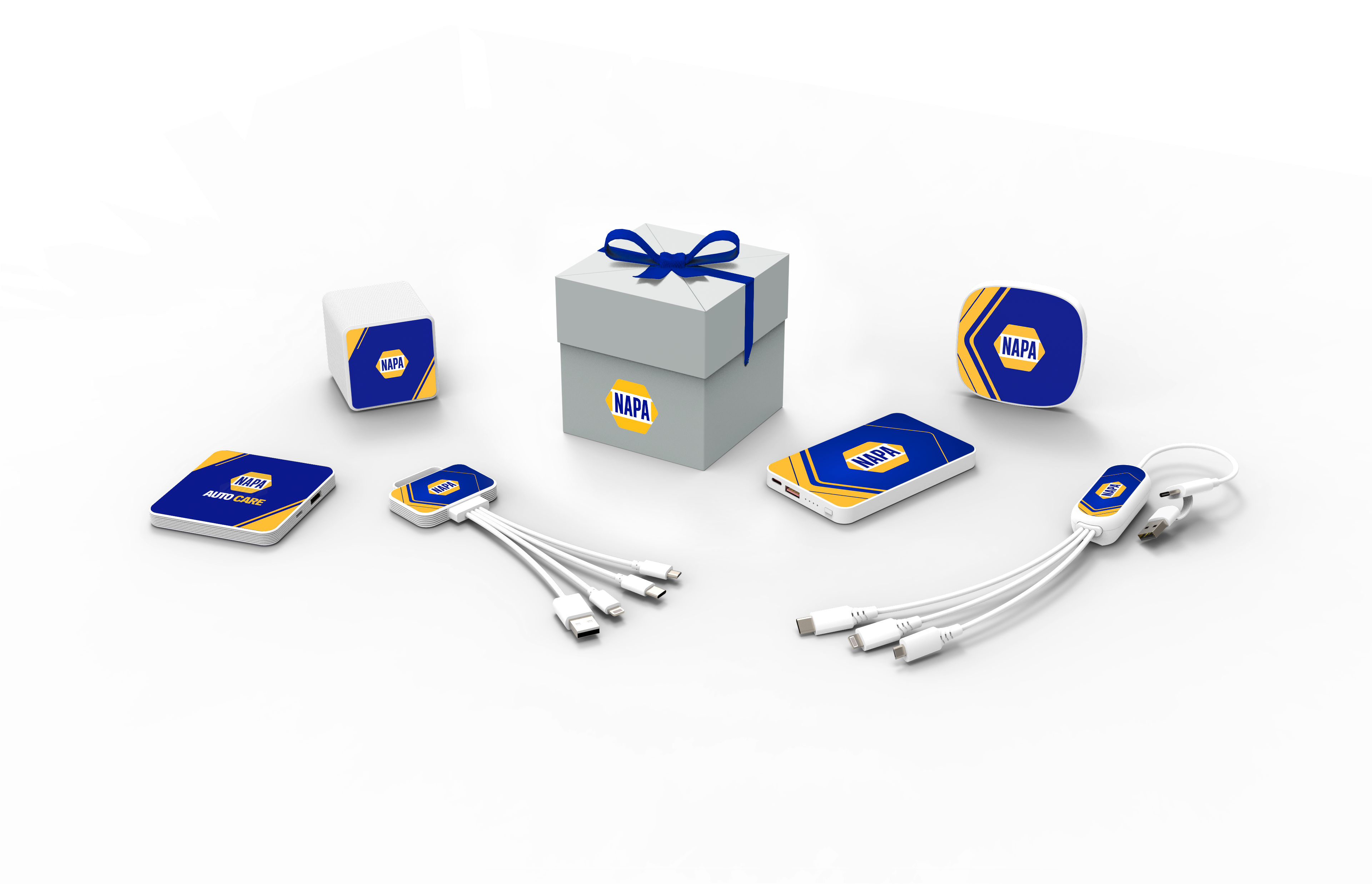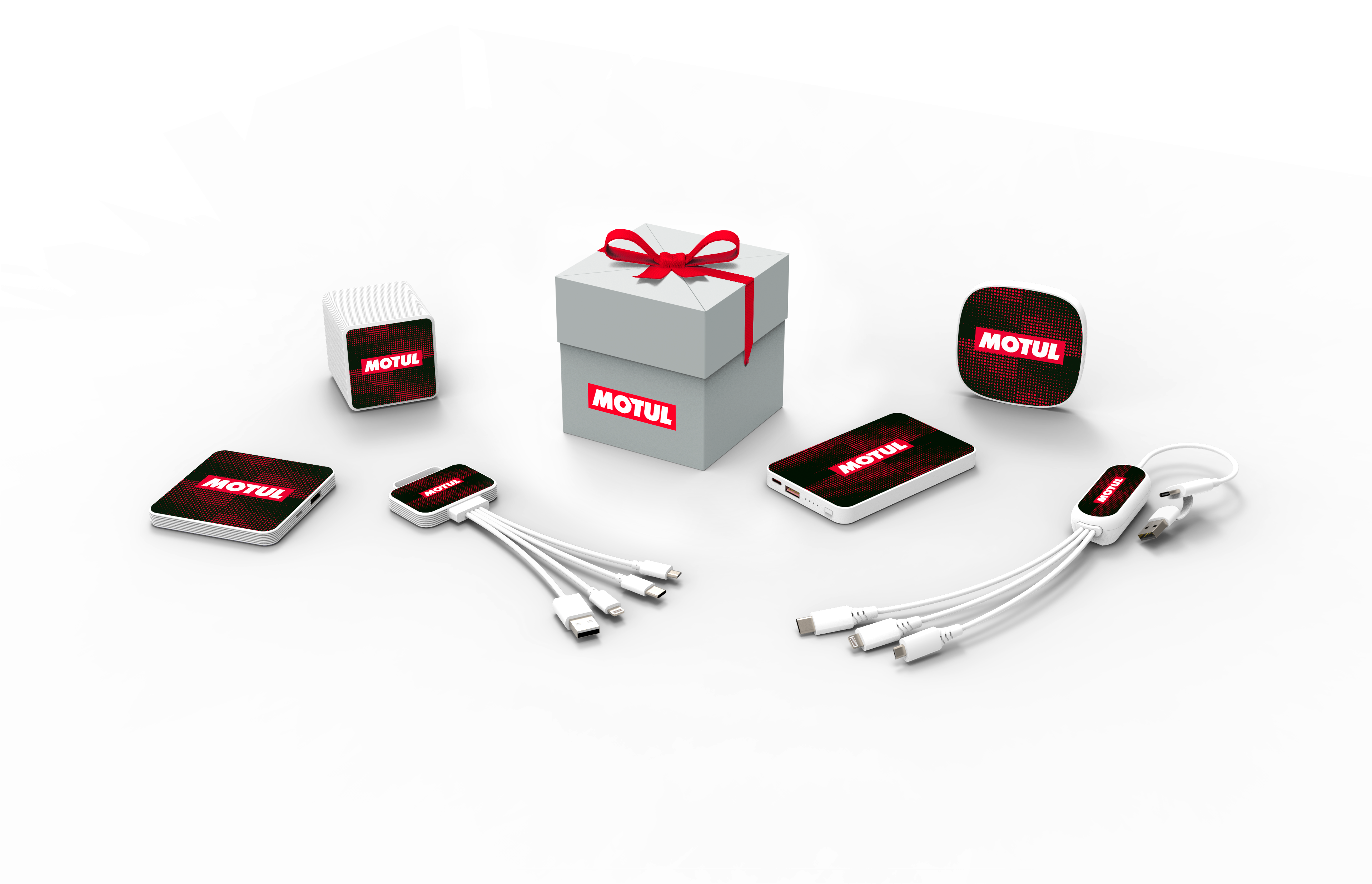 A premium tech gift set designed to impress. Create a lasting impression with a beautifully curated selection of branded tech essentials. Choose from elegant power banks, wireless chargers and multi cables, all presented in a sophisticated ribbon tied gift box.
